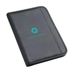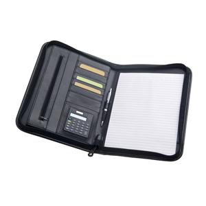 Pasta A4 em csintético com bolso frontal e fecho com folhas pautadas