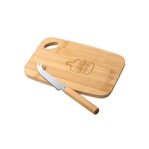 Conjunto de tábua de corte e pequena faca de queijo em bambu