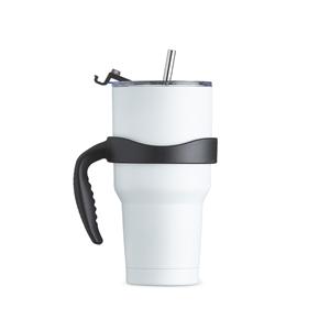 Descrição: Caneca térmica de inox com capacidade para 800 ml, contém duas tampas, sendo uma acrílica com bocal, trava de segurança, e uma pequena tampa acoplada emborrachada para dissipação da temperatura, e a segunda tampa acrílica, contém compartimento