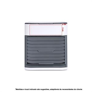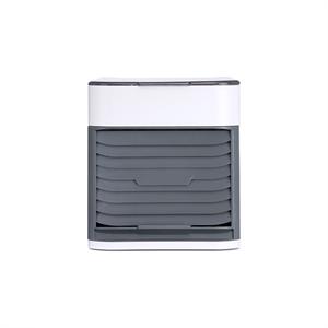 Descrição: Mini climatizador de ar portátil multifunções, possui reservatório de água de 500ml, três níveis de potência, oscilação vertical com regulagem manual e luzes LED RGB. Pode ser usado como climatizador, ventilador e umidificador.Altura : 16,
