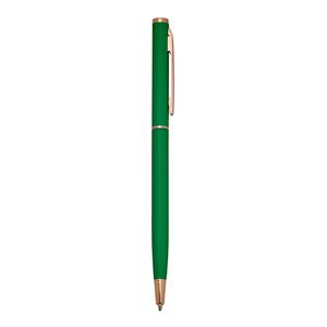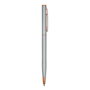 Descrição: Caneta metálica com carga esferográfica azul e acionamento por rotação.