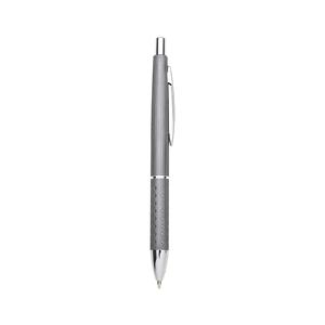 Descrição: Caneta metálica com pintura escovada colorida, possui anel inferior prata e detalhes em relevo semelhante a strass. Acionamento por clique.