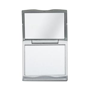 Descrição: Espelho plástico duplo com aumento. Frente e verso liso porém a parte superior não é plana, possui um detalhe de ondulação.