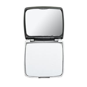 Descrição: Espelho quadrado duplo sem aumento, material em plástico resistente com superfície plana e parte inferior com relevo.