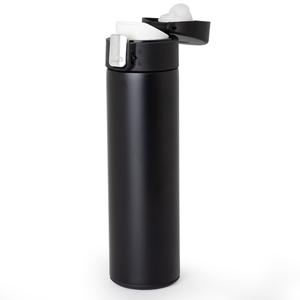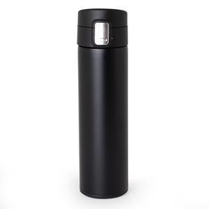 Descrição: Garrafa Térmica 450 ml em inox com sistema de trava. Contém acabamento fosco e revestimento interno em inox, possui tampa plástica fosca com borracha interna para vedação, evitando o vazamento de líquido, botão central para abertura e trava lat