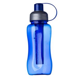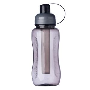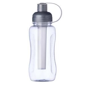 Descrição: Squeeze plástico 600ml ice bar. Squeeze colorido acinturado com detalhe retangular texturizado nas laterais, possui tampa cinza com detalhe ondulado ao redor e tampa com alça para o bico. Parte interna possui uma barra congelante(desencaixe a b