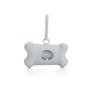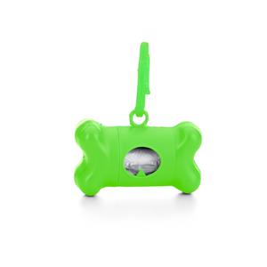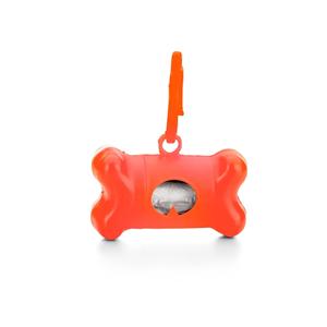 Descrição: Kit saquinho coletor em formato de osso. Produzido em material plástico, o kit possui abertura lateral para encaixe do rolo e parte frontal vazada com dente plástico, permitindo puxar e destacar os saquinhos. Acompanha mosquetão e rolo de saqui
