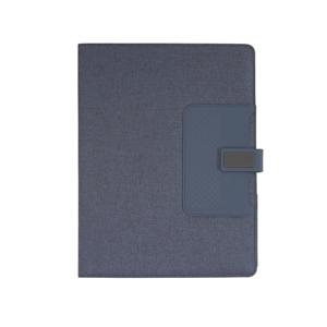 Descrição: Pasta convenção com bloco para anotações. Pasta confeccionada em material sintético, possui fecho imantado com plaquinha emborrachada, “bolso” interno para arquivar documentos, suporte para cartões, celulares e caneta, além de um bloco com folh