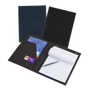 Descrição: Pasta convenção de couro sintético, possui Porta-Caneta, compartimento para arquivar documentos, dois bolsos para cartões e um bloco com aproximadamente 25 folhas brancas não pautadas.