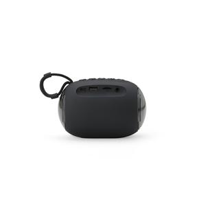 Descrição: Caixa de som Bluetooth com conectividade TWS, que permite sincronizar duas caixas de som em uma, aumentando a potência sonora. Possui iluminação RGB que se ajusta conforme a batida da música, entrada para cartão TF (MicroSD), pendrive, DC 5V e