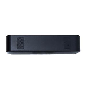 Descrição: Caixa de Som Multimídia retangular com display. Material plástico texturizado, tela de proteção dos auto-falantes em metal, parte inferior com borrachas anti-deslizantes. Possui os botões de Play/Pause; Aumentar e diminuir volume/avançar e retr