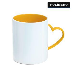 Descrição: Caneca para Sublimação de Plástico Branco Love com Alça e interior Amarelo Escuro