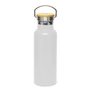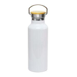 Descrição: Garrafa Térmica Leiteira para Sublimação em Aço Inox Branca com Parede Dupla e Tampa Bambu - 500ml