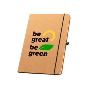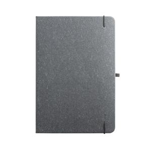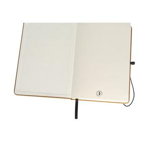 Descrição: Caderno A5 de capa dura em couro reciclado, com 96 folhas pautadas cor marfim em papel proveniente de gestão florestal sustentável.