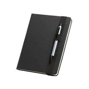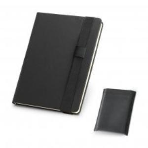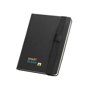 Descrição: Caderno A5 de capa dura em c. sintético e 140 folhas lisas em cor marfim. Fornecido em bolsa de non-woven.