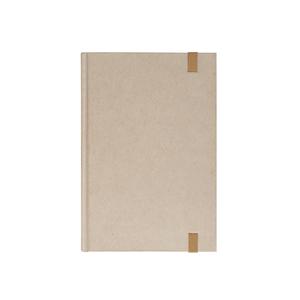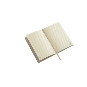 Descrição: Caderno A5 de capa dura em papel à base de cana de açúcar (80% polpa da cana de açúcar). O interior contém 80 folhas pautadas em papel à base de cana de açúcar (80% polpa da cana de açúcar) (90 g/m²), fita separadora e elástico para fecho do bl