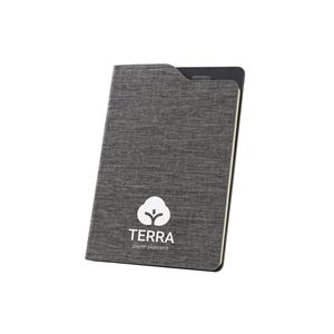 Caderno A5 de capa dura em tecido poliéster 100% reciclado (100% rPET) com folhas pautadas