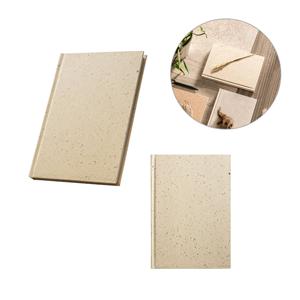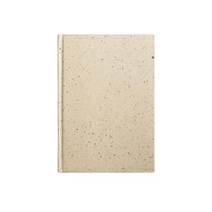 Descrição: Caderno A5 de capa dura em resíduos de cevada (25%) e pedaços de algodão reciclado (75%). O interior com 80 folhas pautadas de papel cevada 100% reciclada. Um caderno que se distingue por dar uma segunda vida a materiais que podem ser reciclado