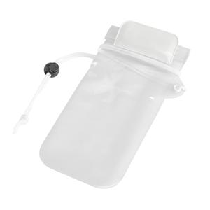 Descrição: Bolsa para celular em PVC impermeável (imersão não aconselhável). A parte frontal é transparente e a parte posterior é em branco fosco. Permite interagir com a tela a partir do exterior. A bolsa tem fechamento hermético e aba em cor com fecho a