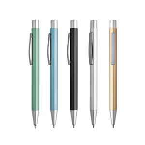Descrição: Esferográfica em alumínio com acabamento mate e clipe de metal. Até 1,5 km de escrita. Escrita em azul.