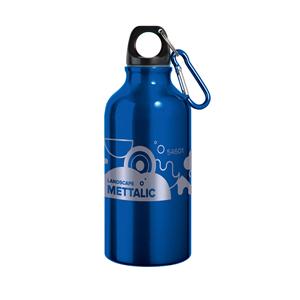 Garrafa esportiva em alumínio e acabamento metálico com mosquetão 400 ml