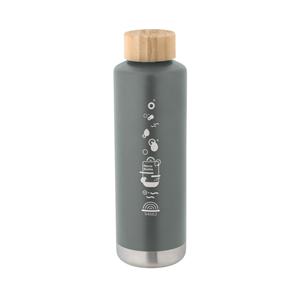 Descrição: Garrafa em aço inox de parede dupla térmica, isolada a vácuo. Parede interna revestida de cobre e tampa em bambu com vedante de silicone para proteção extra. Capacidade até 640 mL. Parede com revestimento em pó que lhe confere mais durabilidade