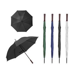 Descrição: Guarda-chuva em poliéster 190T e pega em madeira. Abertura manual.
