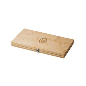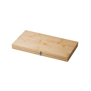 Descrição: Kit churrasco em caixa de bambu. Composto por 4 utensílios em aço inox e bambu: faca japonesa, faca chefe, faca boning e garfo.
