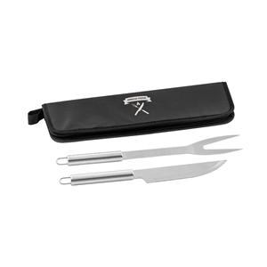 Kit churrasco em estojo em 210D com 2 utensílios em aço inox