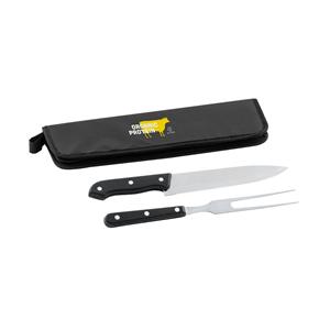 Kit churrasco em estojo em 210D em 2 utensílios em aço inox e PP