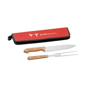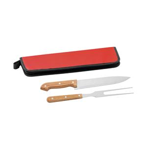 Kit churrasco em estojo em 210D com 2 utensílios em aço inox e madeira seringueira