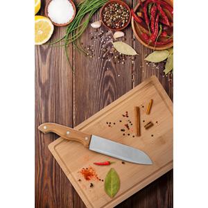 Descrição: Kit churrasco em estojo de 210D. Composto por tábua em bambu e 5 utensílios em aço inox e madeira de Seringueira: faca chefe, faca média, pinça, garfo e afiador. Certificação EU Food Grade. A cor e o resultado da impressão nos materiais naturai