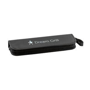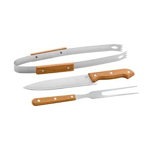 Kit churrasco em estojo de 210D com 3 utensílios em aço inox e madeira de seringueira