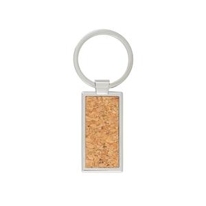 Kit esferográfica e chaveiro em metal com acabamento em cortiça