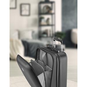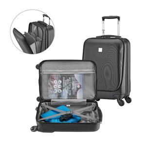 Descrição: Mala de viagem executivo em ABS com compartimento frontal para notebook 17'' e interior forrado. 4 rodas giratórias, pega extensível em alumínio, com mola (altura da pega estendida até 480 mm) e placa metálica removível, para fácil gravação. Ma