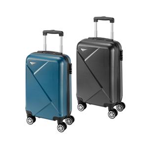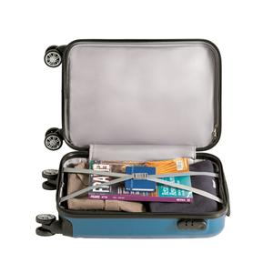 Descrição: Mala de viagem executiva em ABS com divisória e interior forrado. Fecho de segurança com senha na lateral, 4 rodas duplas giratórias e pega extensível em metal (altura até 530 mm), com mola e placa metálica removível, para fácil gravação. Capac