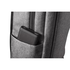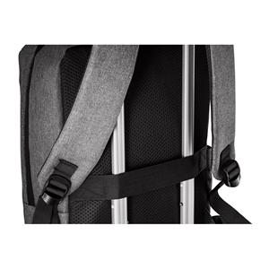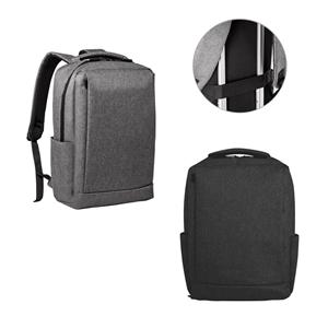 Descrição: Mochila para notebook em 300D de alta densidade com 2 divisórias almofadadas para notebook até 15,6" e tablet 10,5" e diversos bolsos interiores. Tem ainda bolso frontal, 2 bolsos laterais e banda para transporte em trolley. Parte posterior e a