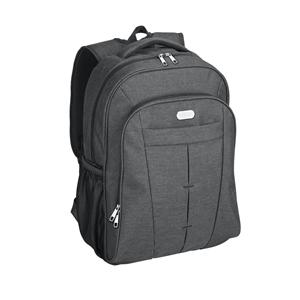 Descrição: Mochila para notebook em 600D de alta densidade com compartimento forrado, com divisória almofadada para notebook até 17'' e diversos bolsos interiores. 2 bolsos laterais em tela mesh e 2 bolsos frontais. Parte posterior almofadada, com sistema