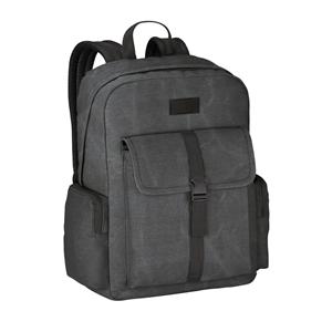 Descrição: Mochila para computador em algodão canvas pré-lavado. Compartimento principal forrado, com 2 divisórias almofadadas para computador até 15.6'' e tablet até 10.5''. A mochila tem bolso frontal e 2 bolsos laterais. Parte posterior e alças são alm