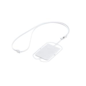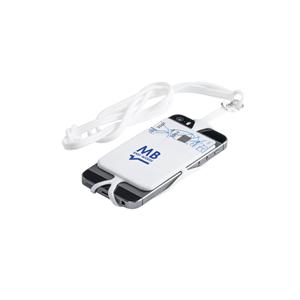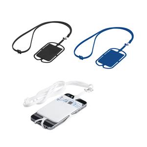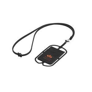 Descrição: Porta-Cartão em silicone com cordão e suporte para celular. Porta-cartões: 57 x 86 x 4 mm | Lanyard: 420 mm