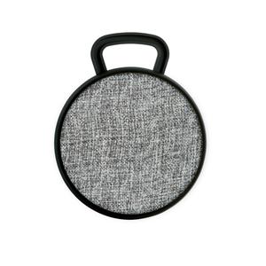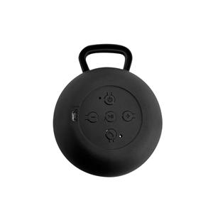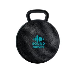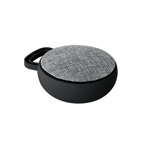 Descrição: Caixa de som portátil com microfone, em ABS e tecido em poliéster. Com gancho e acabamento emborrachado. Transmissão sem fios BT v4.2, potência de 3W/4Ω e autonomia aproximada de 3 h. Função para atender chamadas, controle de volume e conexão à