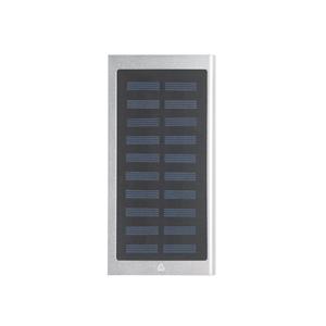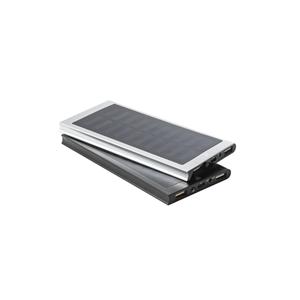 Descrição: Bateria portátil em alumínio 100% reciclado. Bateria em lítio, com painel solar e lanterna. Tem capacidade de 8.000 mAh e tempo de vida superior a 500 ciclos. Possui uma porta de entrada e saída USB-C e duas portas de saída USB-A. Incluso cabo
