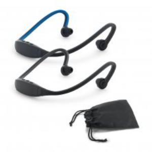 Descrição: Fone de Ouvido desportivo em ABS e silicone com transmissão sem fios BT v4.0. Autonomia aproximada de 3 h. Função para atender chamadas e conexão à playlist do dispositivo móvel. Incluso cabo micro USB para carregar. Fornecido com bolsa em non-