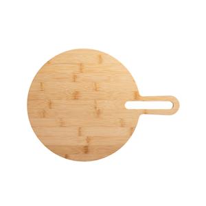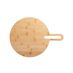 Descrição: Tábua de servir em bambu com pega, de grande dimensão e de utilização versátil. Ideal para pizza. Fornecido com caixa presente de papel kraft reciclado. Certificação EU Food Grade. A cor e o resultado da impressão nos materiais naturais pode va