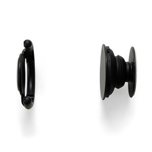 Descrição: Suporte plástico para celular. Material plástico colorido, possui “disco” anelar retrátil que ao puxá-lo abrirá o encaixe para os dedos e possibilitará a rotação da peça. Base plástica para encaixe, pode ser colada no celular, paredes, vidros,