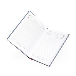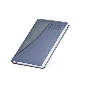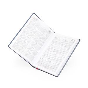 Descrição: Agenda diária 2025 de couro sintético. Contém fita de cetim marca página, dados pessoais, calendário de 2024 à 2026, mapa do Brasil, mapa-múndi, índice telefônico e planejamento.