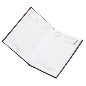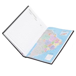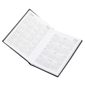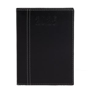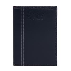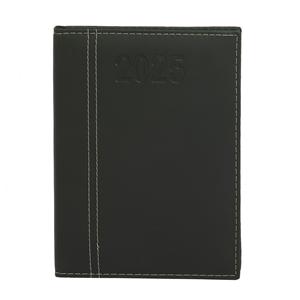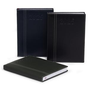 Descrição: Agenda diária 2025 de couro sintético. Contém fita de cetim marca página, dados pessoais, calendário de 2024 à 2026, mapa do Brasil, mapa-múndi, índice telefônico e planejamento.