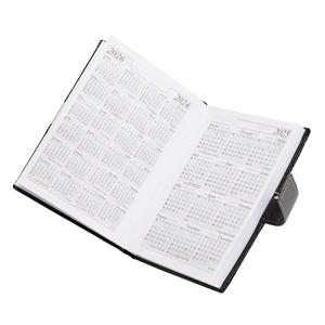 Descrição: Agenda diária 2025 de couro sintético com fecho e suporte para caneta. Contém fita de cetim marca página, dados pessoais, calendário de 2024 à 2026, endereços da internet, mapa do Brasil, mapa-múndi, índice telefônico e planejamento.OBS.: IMAGE