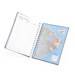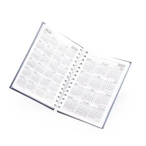 Descrição: Agenda diária 2025 metalizada em Percalux com wire-o metálico. Possui "bolso" plástico atrás da capa, páginas de dados pessoais, calendário 2024 a 2026, mapa do Brasil, mapa-múndi, índice telefônico e planejamento.