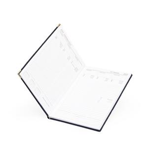 Descrição: Agenda diária 2025 de couro sintético. Contém fita de cetim marca página, dados pessoais, calendário de 2024 à 2026, mapas, telefone Úteis, planejamentos, códigos do serviço DDI e DDD.